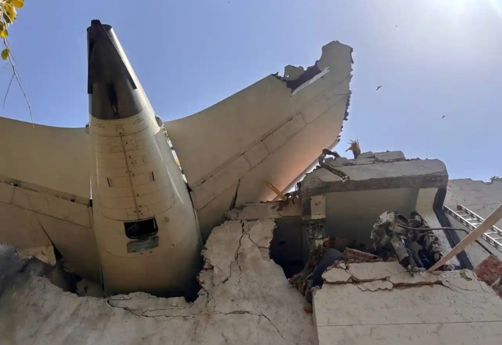 The aircraft was completely destroyed. The crash caused extensive structural damage and fire at the hostel building of B.J. Medical College. Multiple vehicles and residential units were affected. Emergency response teams battled significant fires and performed mass casualty rescue operations.